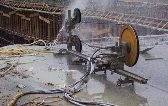 混凝土切開是指選用液壓墻鋸機(jī)、電動(dòng)碟鋸機(jī)、水鉆或許馬路切開機(jī)等東西對(duì)混凝土構(gòu)件、墻體、路面等進(jìn)行切開的施工技能,它具有切開才能強(qiáng),靜力無損,功率高,選用水冷卻,無施工粉塵等特色 :切開撤除:繩鋸切開是金剛石繩子在液壓馬達(dá)驅(qū)動(dòng)下繞被切開物高速跋涉研磨然后完結(jié)切開作業(yè)。  運(yùn)用繩鋸設(shè)備對(duì)混凝土切開拆 除···